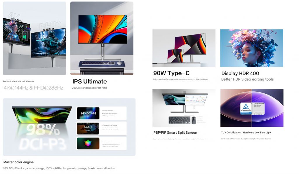 AOC ha rilasciato il U27U3XD, un monitor da 27 pollici presentato per la prima volta a giugno 2025. Il modello offre due modalità operative, permettendo agli utenti di scegliere tra una frequenza di aggiornamento più elevata o una maggiore nitidezza dell’immagine. È stato lanciato in Cina al prezzo di 1.796 CNY (circa 252 dollari USA).